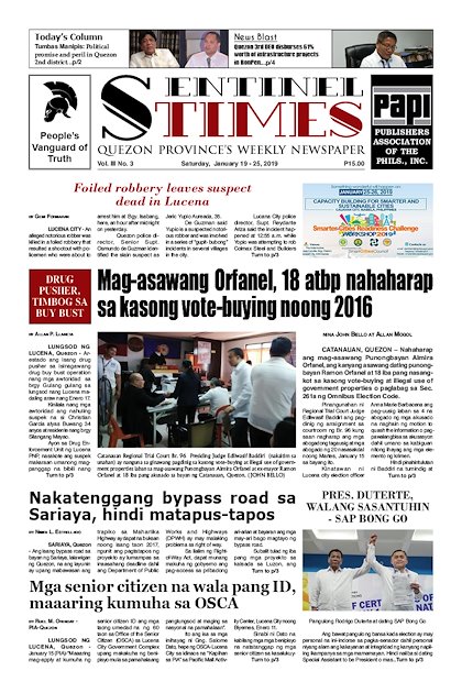 Sentinel Times Front Pages 2019 Nimfa Estrellado Portfolio